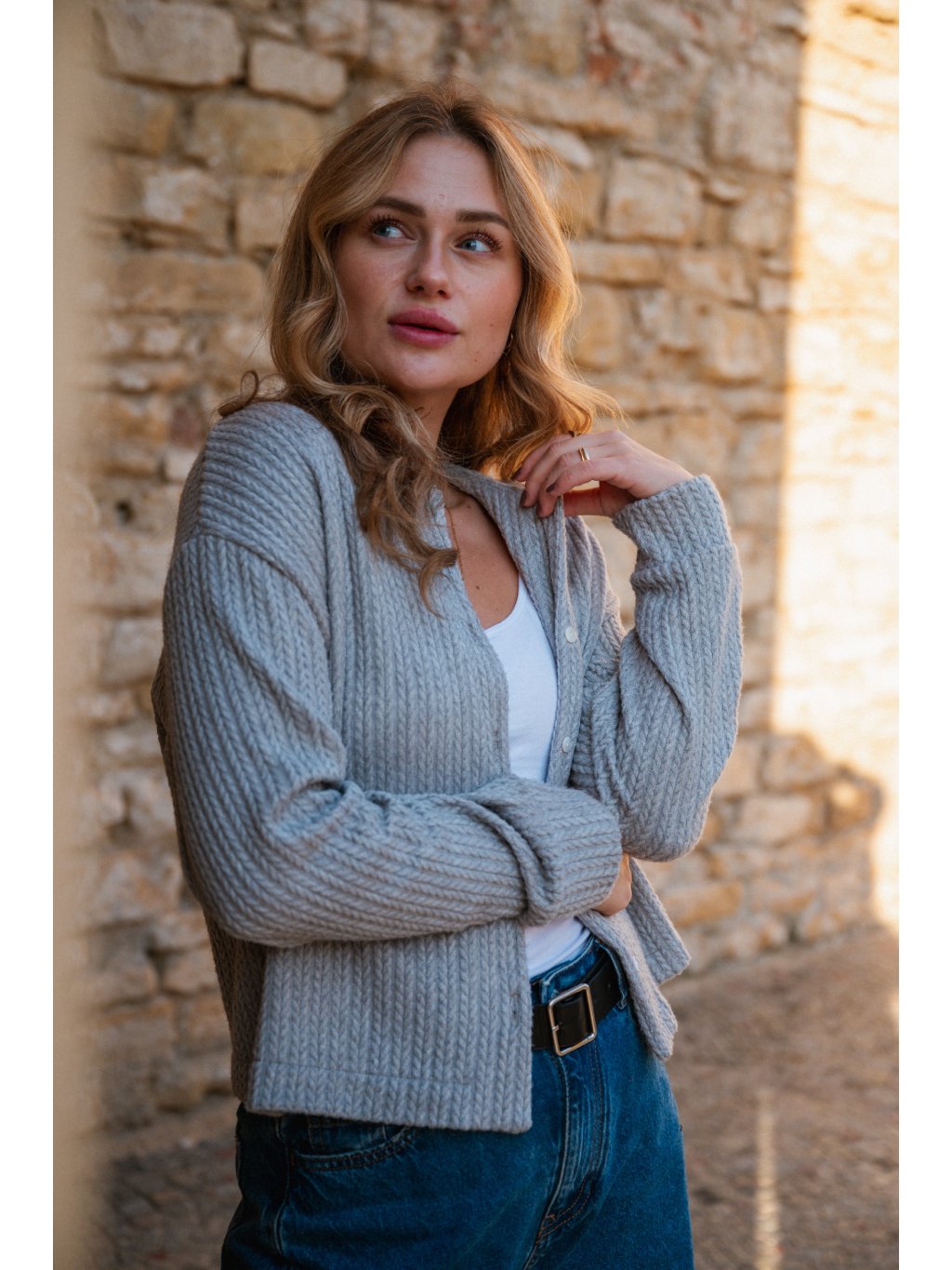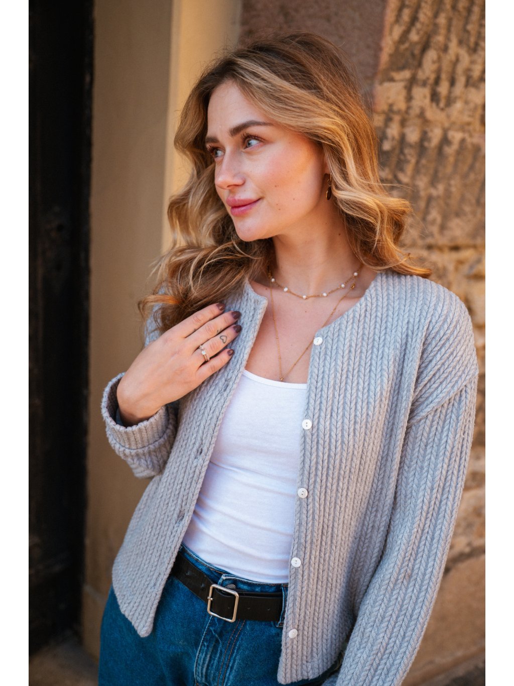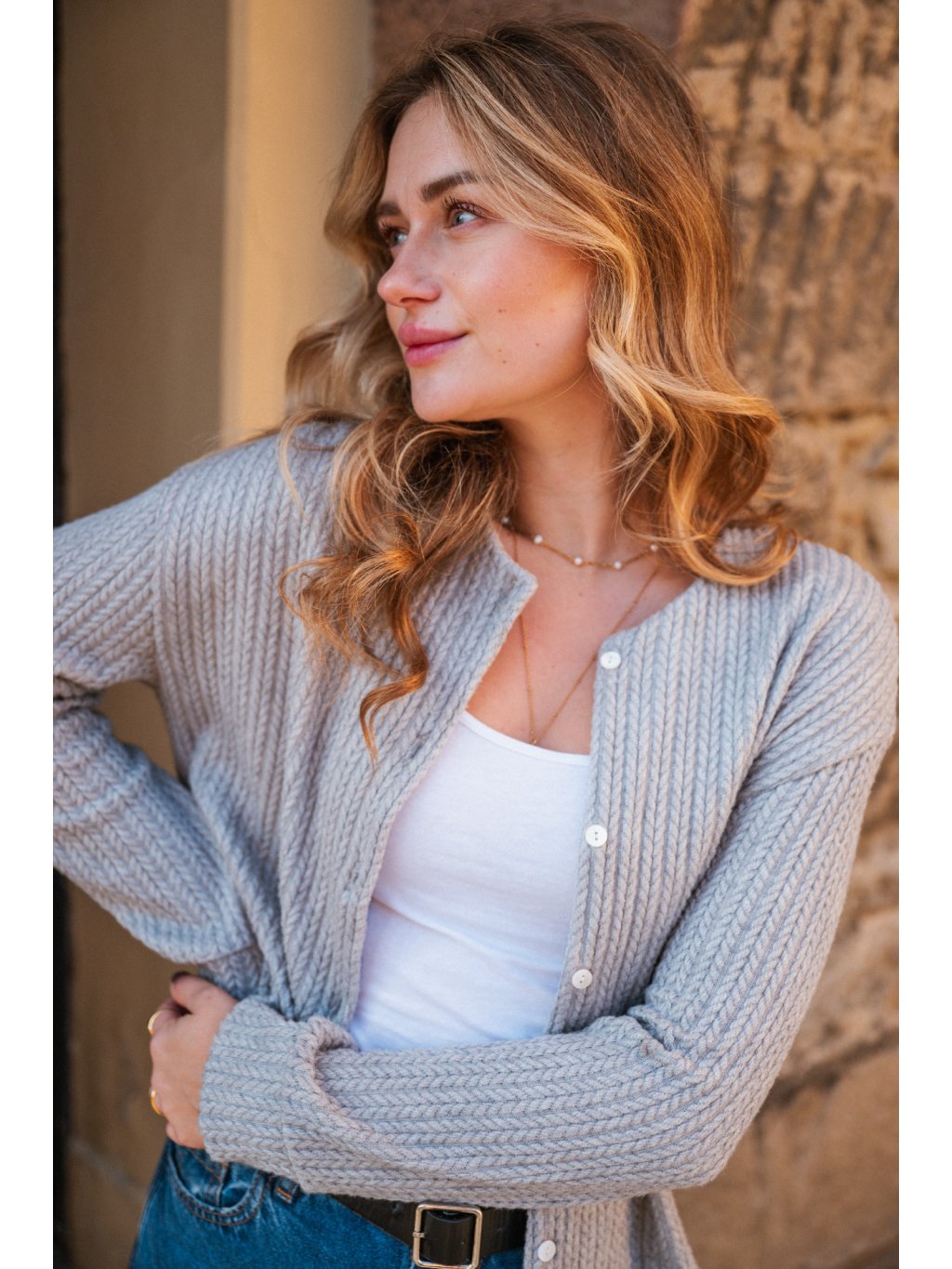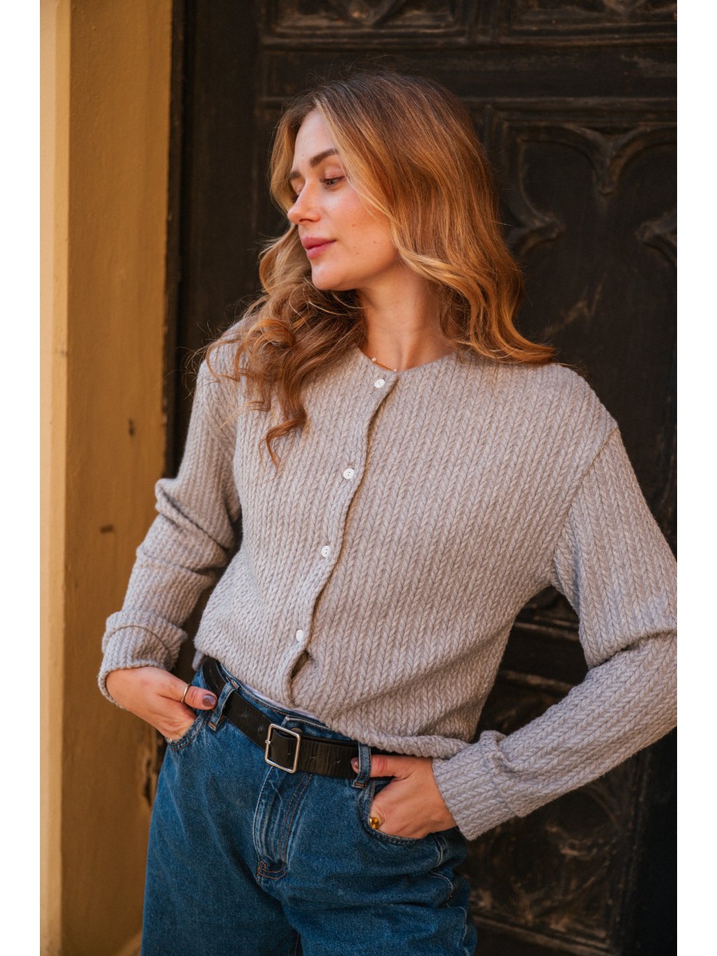 Zapínání na knoflíčky. Klasicky nadčasový střih. Kousek, který vám díky svému materiálu vydrží několik let a bude vypadat pořád stejně dobře!
