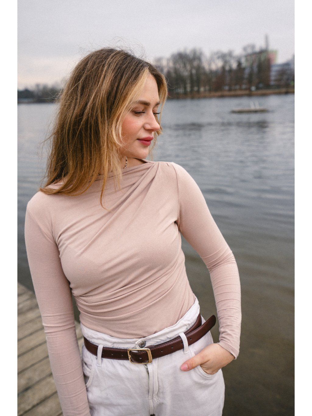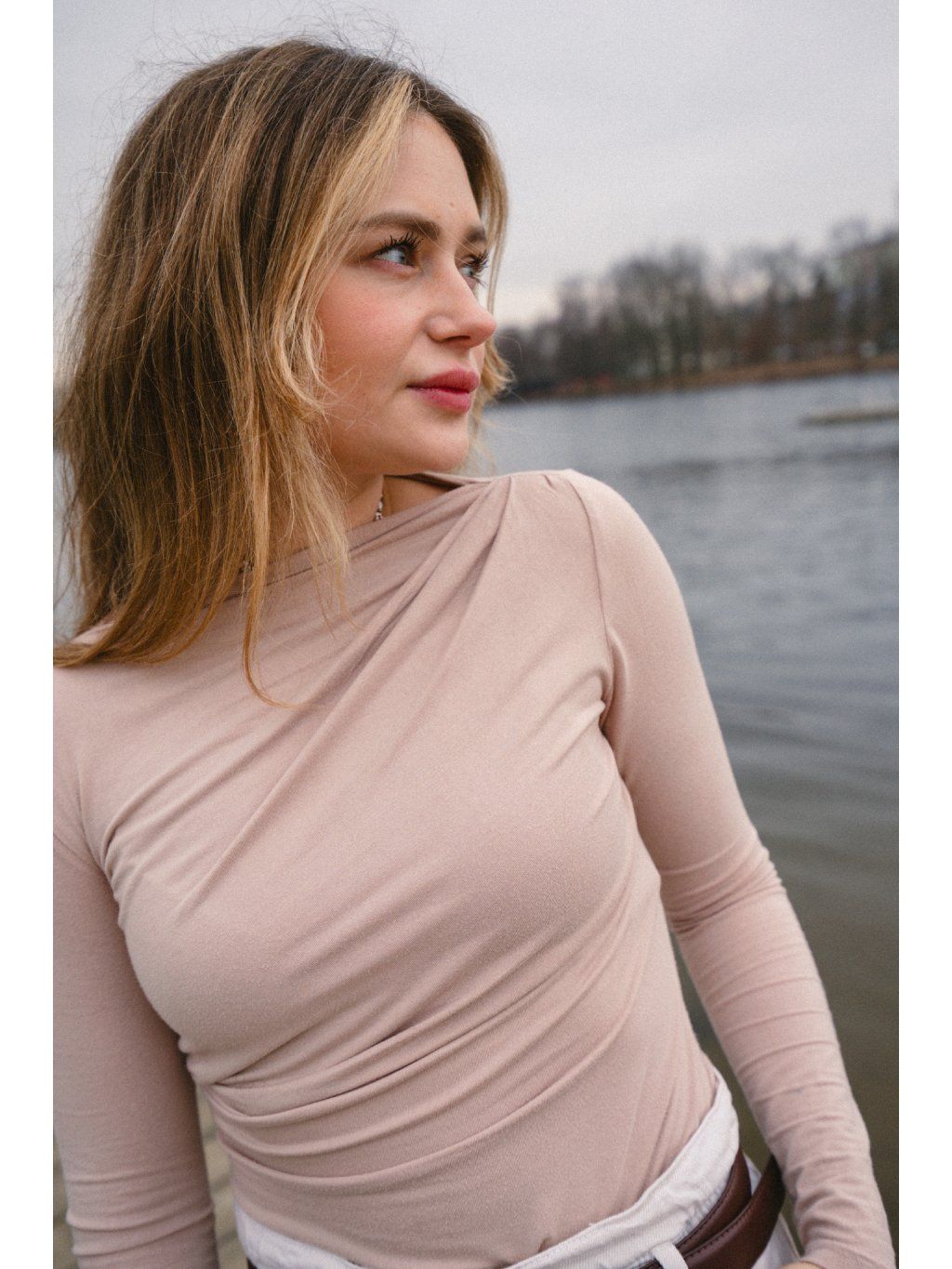 LOREN minimalistický top s dlouhým rukávem z hebkého, pružného bambusového úpletu, který se přirozeně přizpůsobí postavě. Asymetrické řasení u krku vytváří nenápadný detail, díky kterému působí elegantně a přitom zůstává dokonale jednoduchý.